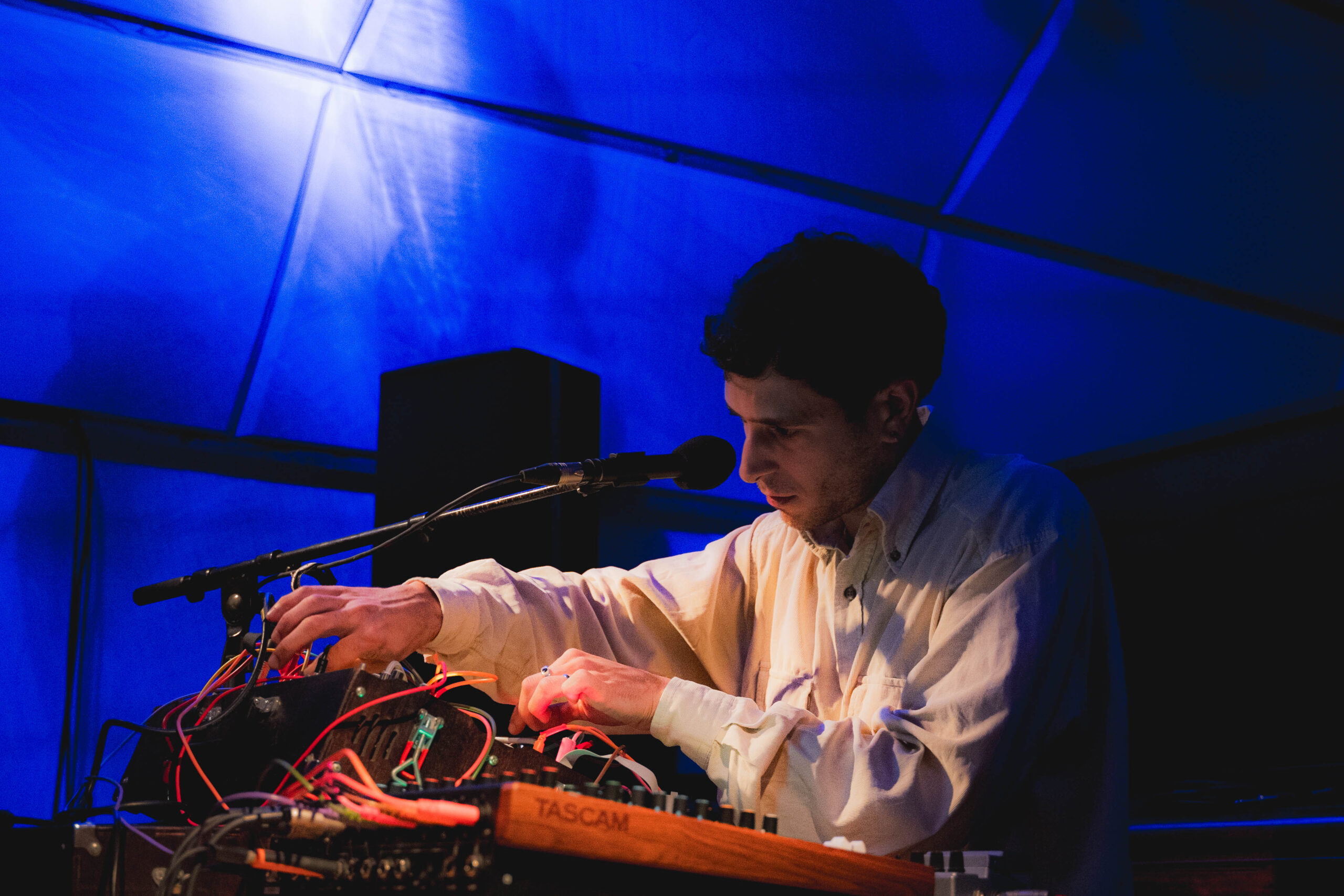 The piece is based on works from Dahan’s album “70 Faces” released on the saga.domain label in 2023, and from his work “structural neurosis” which was presented at the Ars Electronica Festival in Linz, supported by the Musrara School.Shaul Dahan is a composer, sound artist, and music collector. In his works, he combines texts and prayers from the religious ritual world with analog modular synthesizers and singing inspired by cantorial traditions. His album “70 Faces”, was presented on international stages in France, Austria, and Leipzig. Shaul is a graduate of the New Music Department at Musrara and the Artistic Research Program.