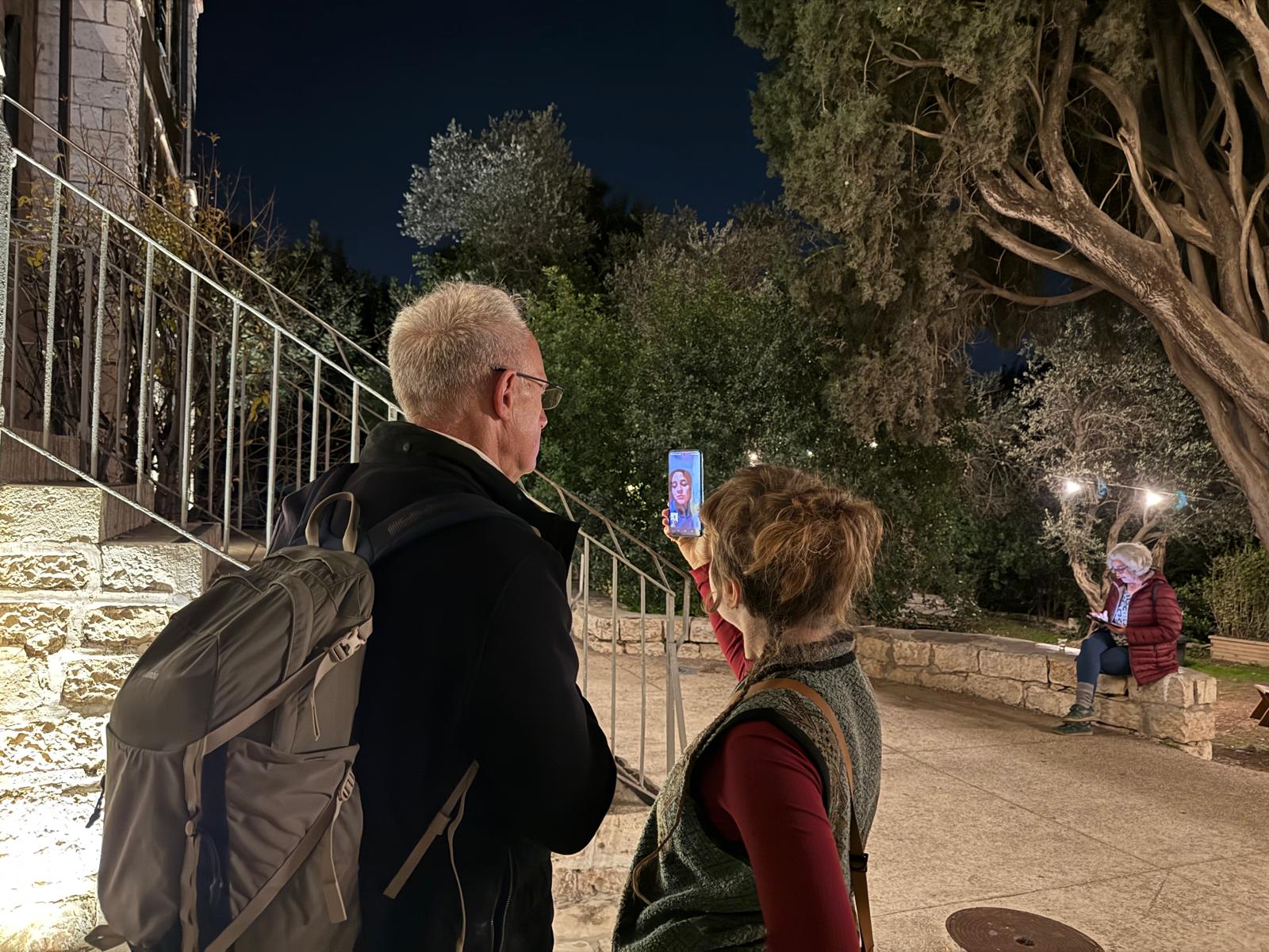 The final room is one of hope for a different possibility: a connection between clown-policewoman Officer Az-Oolay in Jerusalem and Lulu and Riwaa residing in Gaza. The sound of a shofar is sent out to them, while Riwaa’s voice is sent out in our direction. Just – to take a moment to listen.
