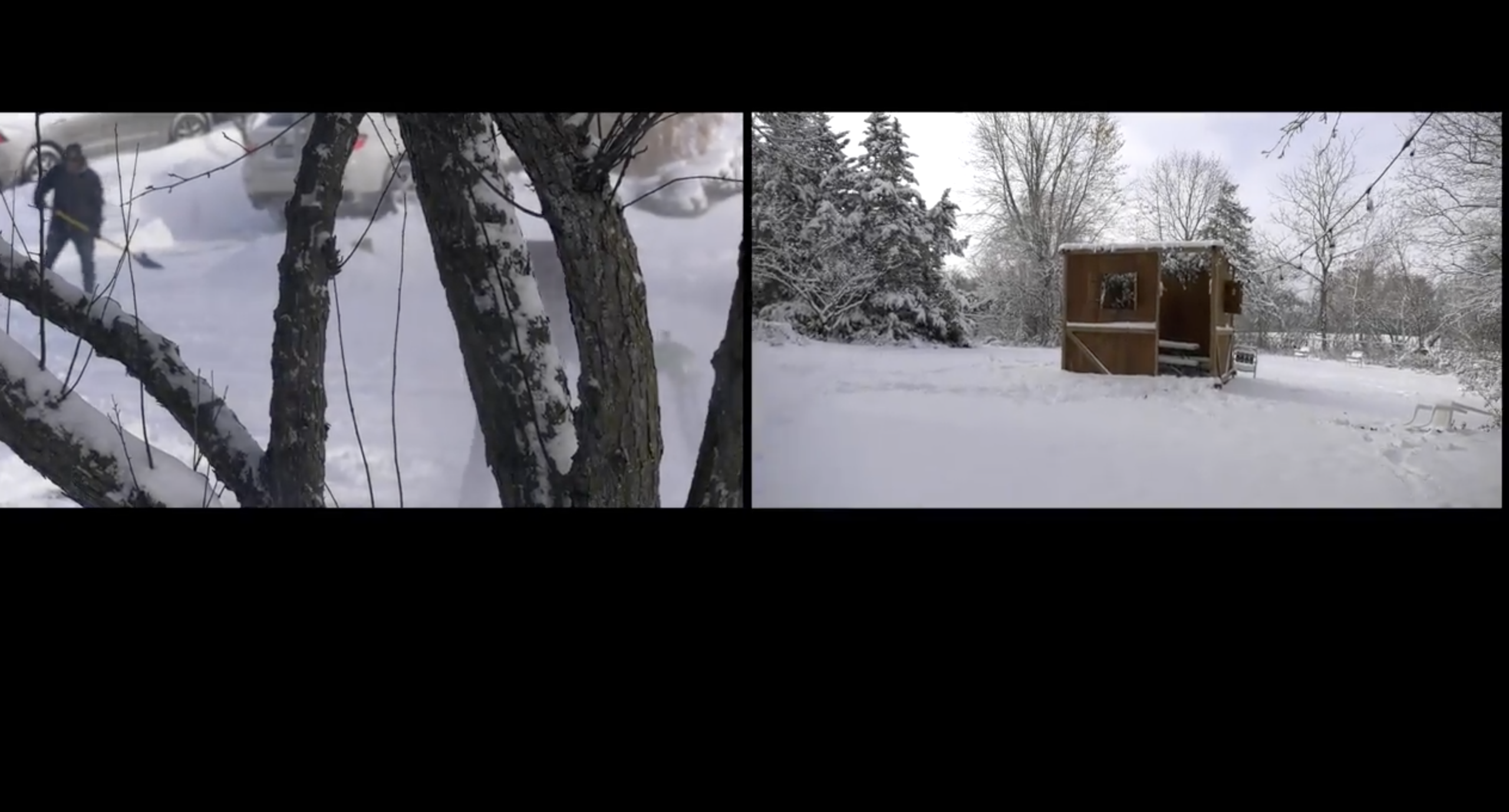 عند اقتراب عطلة عيد العرش التي حالت أثناء إقامتنا في كينجستون، قمنا ببناء عريشة في الحديقة. على عكس العادة المتمثلة في تفكيك العرائش بعد العيد، فقد تركنا العريشة قائمة على مدار العام مُعرَّضة لتغييرات الطقس القاسية. بعد فصل الشتاء، قمنا بدعوة الرسام الكندي برايان أوهاد لرسم المناظر الطبيعية الثلجية على جوانب العريشة وإحياء ذكرى بحيرة أونتاريو المجمدة على الجدار المخصص لصورة القدس. أرسلنا العريشة مع لوحات المناظر الطبيعية الكندية إلى القدس كمظلة، لوضعها كقطعة إثنوغرافية في بيت هانسن ("عريشة كينجستون")، إلى جانب مصدر إلهامها: نسخة طبق الأصل من عريشة ديلر الألمانية (1840-2017). لقد قمنا بدعوة كيتورا منور هذه المرة لبناء نموذج مصغر لعريشة كينجستون من أجل إضافتها لمجموعة متحف المعاصر..